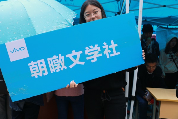 活动正式开始之前,公司的十三家社团已陆续到达现场,并布置好各自的场地。各个社团的理事长参与“百团大战”启动仪式,在舞台前扬旗挥舞,拍照留念。朝暾文学社、汉韵学社等社团前早已排成长队。各个社团都以独特的方式展现了独具魅力的社团文化,汉韵学社身着精美的汉服寻求志同道合的人,并手持一幅题为“礼仪之邦”的书法展示汉文化;鹿鸣茶艺社也以分发金骏眉的形式给活动增添了不少色彩。