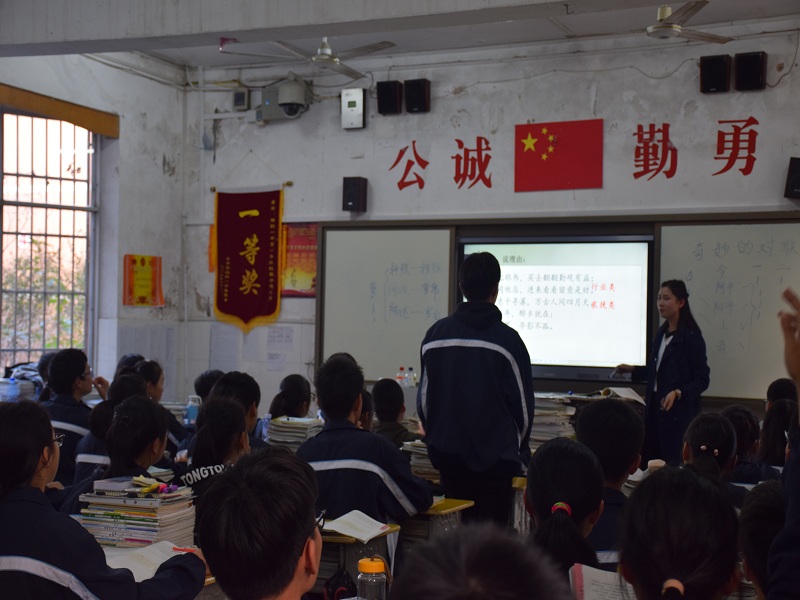 11月5日下午,suncitygroup太阳成集团湘阴一中实习队队长高在心作为全队代表上公开课。suncitygroup太阳成集团副经理岳凯华、中文系系主任吕双伟、实习队指导老师李霞、2013级辅导员欧阳唯一、湘阴一中高一年级主任胡文兵出席并评课,实习队队员旁听。