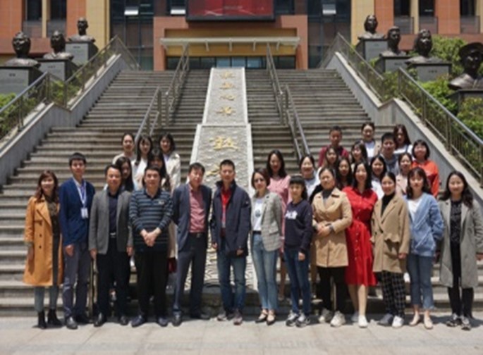 唐凤梅宣布实习汇报会结束,全体与会人员在综合楼前合影留念。