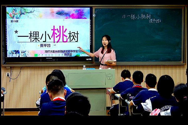 会上,队长周倩羽进行了《一棵小桃树》的汇报课展示,课堂将小桃树的生长经历与“我”的成长经历进行对比讲解,从而引出“我”对小桃树的特殊情感以及托物言志的写作手法。汇报课后,王翔和陈文娟分别就汇报课进行了点评。其中,王翔对于周倩羽的课堂课堂给予了高度肯定,教师在讲台上教姿从容,落落大方,板书工整美观。陈文娟老师则谈到,汇报课立足于四大语文核心素养,分别从语言的建构与运用、思维的发展与提示、审美的鉴赏与创造、文化的传承与理解四个方面对文本进行了解读,教师对于自读课文的特点及其讲授技巧也把握得很到位。