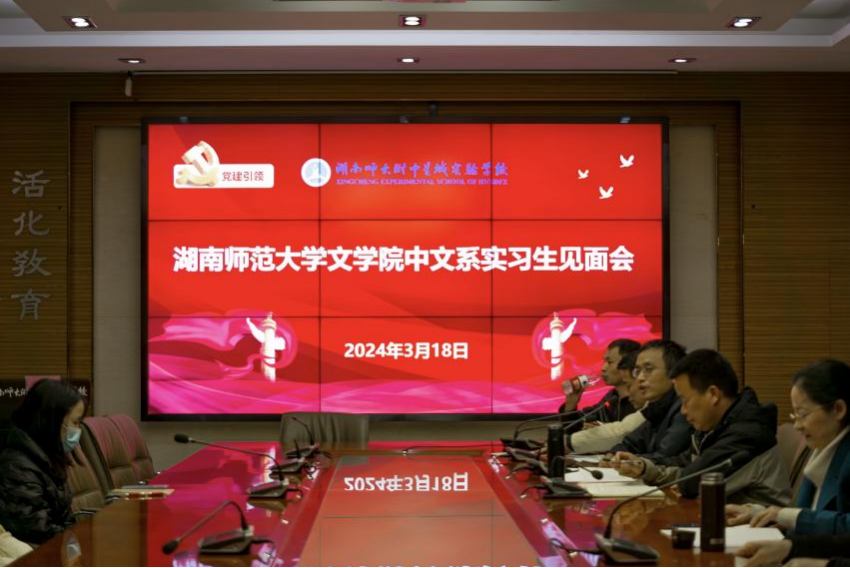 (通讯员罗灿姜齐家徐佳怡)3月18日下午,2021级赴湖南师大附中星城实验公司实习队于该校会议室举行见面会。仪式由星城实验公司副董事长梁平主持,教学处主任姚光荣、工会主席李凌峰等校方代表以及实习队指导老师张幼军和实习队全体成员与会。