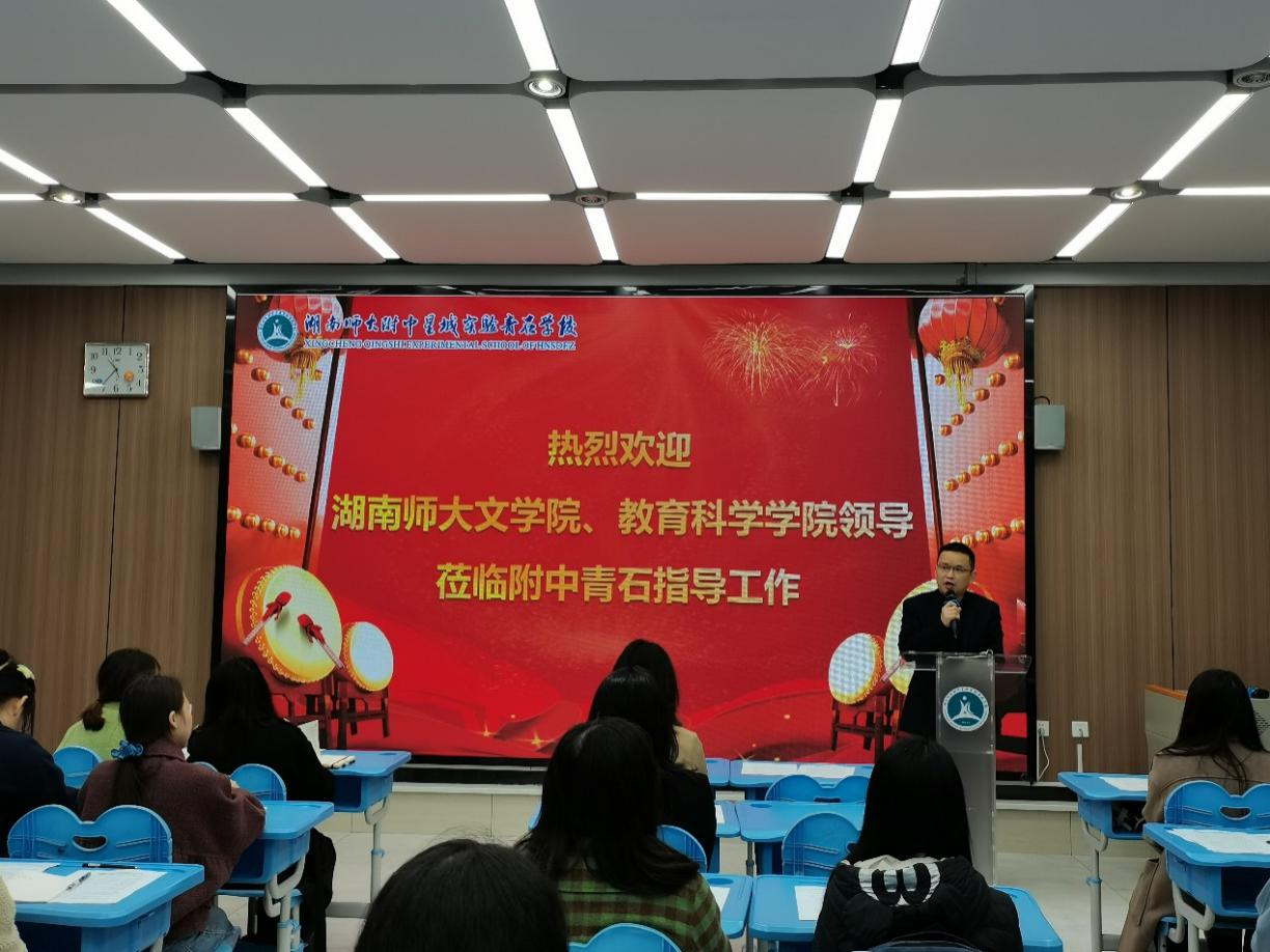 副经理吕双伟对师大附中星城实验青石公司的支持和保障工作表示感谢,并对实习队表达了殷切的期许,希望各位实习生能够把握好宝贵的实习机会,在教学实践中结合自己的专业知识,发挥自身优势,全力以赴,做好实习工作。吕经理还期待双方能够在语文教育、教师招聘和双向互聘等方面加强交流和合作。