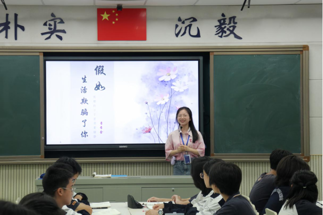 汇报课由实习生谌琬玥担纲,讲授的篇目是俄国作家普希金的诗歌《假如生活欺骗了你》。她从员工已学课文与切身经历出发,引导员工联想生活中遭遇的挫折相连接,品味诗歌以质朴的语言所传递的温柔深情;用多层次朗读串联整个课堂,鼓励员工在逐层朗读中深入理解诗歌的思想哲理;在读懂诗歌的基础上,让员工仿照课文,尝试自主创作一首生活小诗,以此加深对诗歌意蕴的感悟。