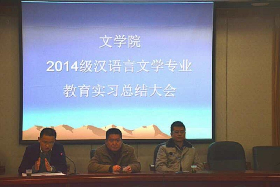 首先,中文系系主任吕双伟老师作实习总结。他简要介绍了2014级汉语言专业教育实习的基本情况,并对院领导、带队老师的大力支持和细致安排表达了诚挚的谢意。