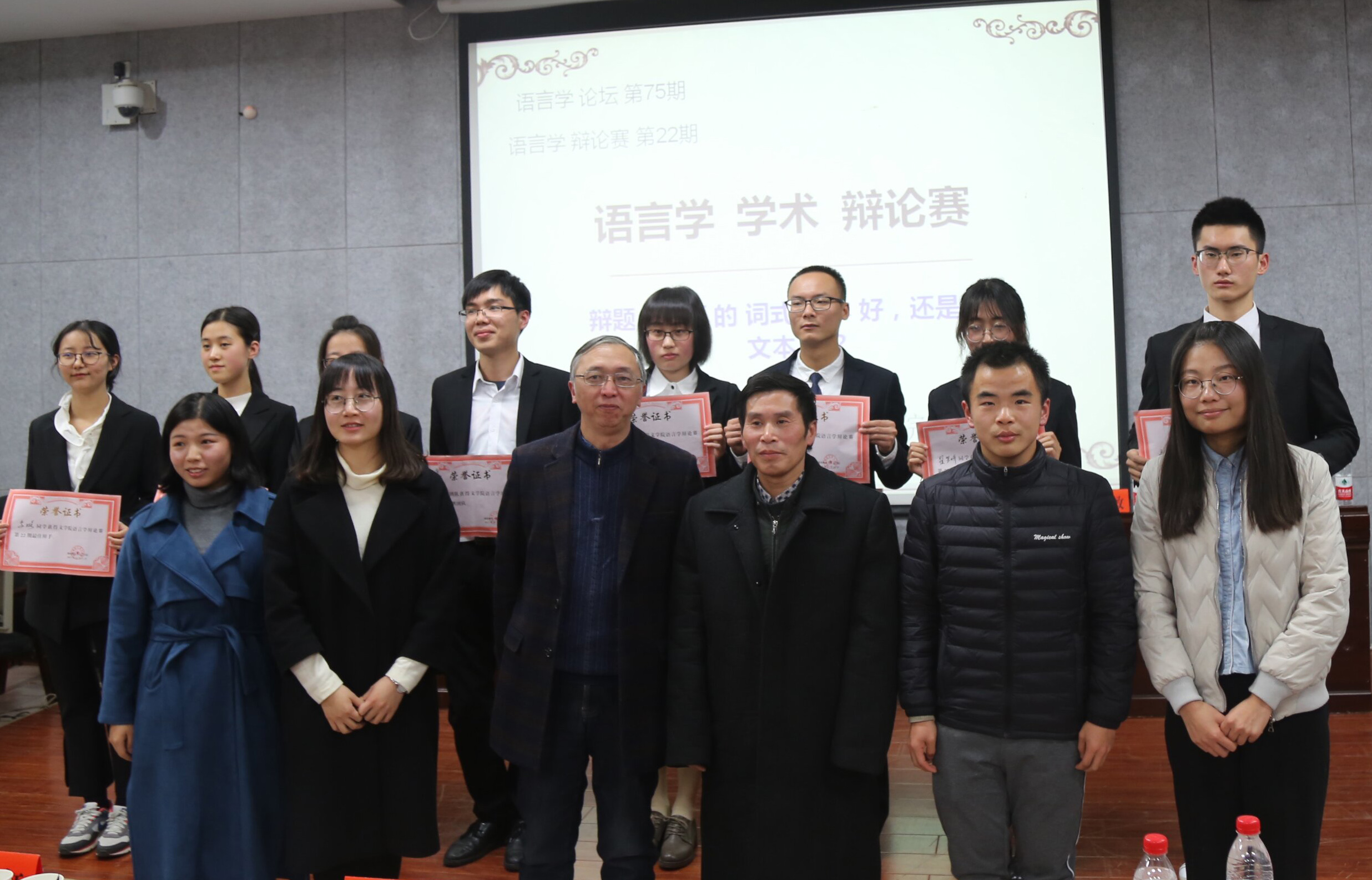 (通讯员王雪纯,柯秀清,何俊仪)2017年11月21日晚,公司第22期语言学辩论赛在217教室举行,现场座无虚席,气氛热烈。博士生导师彭泽润教授、曾常红副教授、博士生雷梓燚等出席并担任评委。