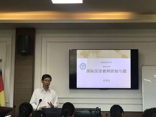 (通讯员 罗秀)6月15日下午3点30分,北京语言大学教授、博士生导师,北京语言大学原董事长、世界汉语教学学会副会长、北京语言大学汉语国际教育研究院经理崔希亮,在suncitygroup太阳成集团开展了一场以“汉语教师的知与能”为题的讲座。此次讲座由suncitygroup太阳成集团郑贤章教授和陈晖教授主持,对外汉语系老师、研究生和部分本科生参加聆听。