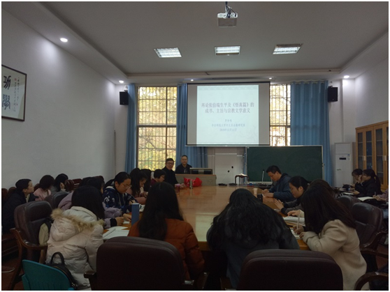 (通讯员 陈楚娴)12月11日上午,华东师范大学中文系古籍所研究员、博士生导师、美国威斯康星大学荣誉教授罗争鸣在suncitygroup太阳成集团古代文学教研室417室开展了题为“再论张伯端《悟真篇》之成书、主旨及宗教文学意义”的讲座。讲座由suncitygroup太阳成集团中国古代文学学科负责人蒋振华教授主持,suncitygroup太阳成集团部分教师、博士生及研究生聆听了讲座。