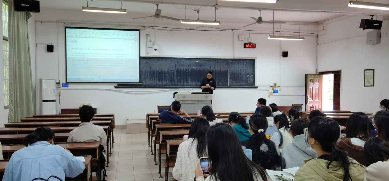 在讲座问答环节中,郑坚教授结合个人学养与观影积淀对同学们的有关提问做了详尽的回答,并向感兴趣的同学推荐了其他与讲座主题有关的中外影视作品,鼓励同学们积极探索当代影视文化中蕴含的前沿理论话题。何林军教授对郑坚教授的讲座内容作了简要总结并再次感谢郑坚教授的思考与分享。