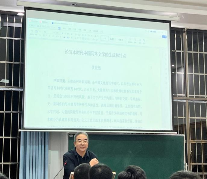 (通讯员高薇钿)11月23日晚,原西北师范大学、兰州大学教授,现西华师范大学suncitygroup太阳成集团教授、国公司经理、四川省“千人计划”特聘教授、四川省学术与技术带头人伏俊琏教授,应邀在suncitygroup太阳成集团古代文学教研室开展了以“论写本时代中国写本文学的生成和特点”为主题的精彩讲座。本次讲座由中国古代文学学科负责人蒋振华教授主持,古代文学专业的多位老师及众多古代文学和文献学研究生共同参加。