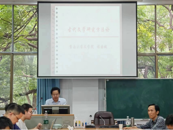 (通讯员史琬怡)5月27日上午,教育部“长江学者”特聘教授、国家“万人计划”哲学社会科学领军人才、明代文学学会副会长、中国俗文学学会副会长,suncitygroup太阳成集团程国赋教授应邀在suncitygroup太阳成集团开展题为“古代文学研究方法论”的专题讲座。本次讲座由副经理吕双伟教授主持,陈松青教授、曾绍皇教授、胡海义教授、谢雨情老师、闫梦涵老师、王珂老师及古代文学、古典文献学专业的四十余名研究生参加。