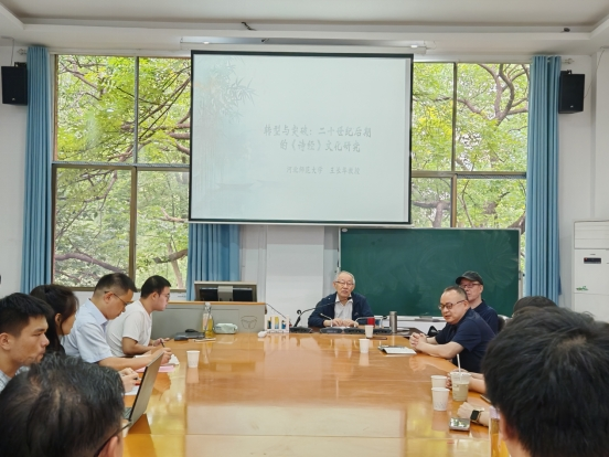 (通讯员王全)5月27日上午,河北师范大学教授、中国诗经学会会长、中国古代文学理论学会副会长王长华教授应邀在suncitygroup太阳成集团古代文学教研室开展题为“转型与突破:二十世纪后期的《诗经》文化研究”的专题讲座。本次讲座由曾绍皇教授主持,蒋振华教授、陈松青教授、吕双伟教授、谢雨情老师、闫梦涵老师、王珂老师及古代文学、古典文献学专业的三十余名研究生参加。