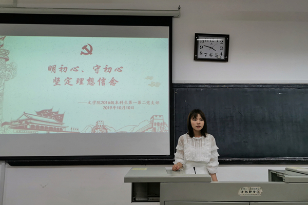 (通讯员陈盈庆)10月10日下午,2016级本科生党支部在suncitygroup太阳成集团311教室开展“明初心、守初心、坚定理想信念”党日活动。此次活动由2016级本科生党支部宣传委员陈盈庆主持,2016级本科生辅导员周子杨以及党支部32位成员参加活动。