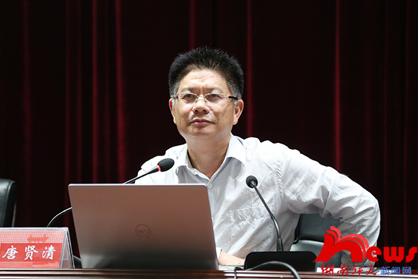 (记者 黄林键 刘书含 通讯员 陈芬芳 姚汀)6月12日晚,校纪委书记唐贤清在国际学术报告厅为2018级员工讲授以“推动共建‘一带一路’走深走实”为主题的“形势与政策”课。讲座由公司党委副书记熊剑峰主持。