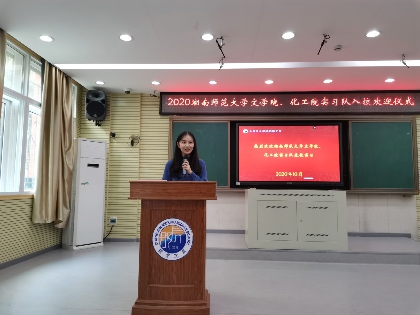 随后,公司实习生代表贺源芃发言。她从对长梅中学“朴实沉毅”和师大“仁爱精勤”的校训深入理解,到对校园位于“踏雪”路的诗意解读,不仅展现出师大汉语言文学学子应有的素养,也展现出实习队伍整体风貌,受到了在场师生的一致好评。