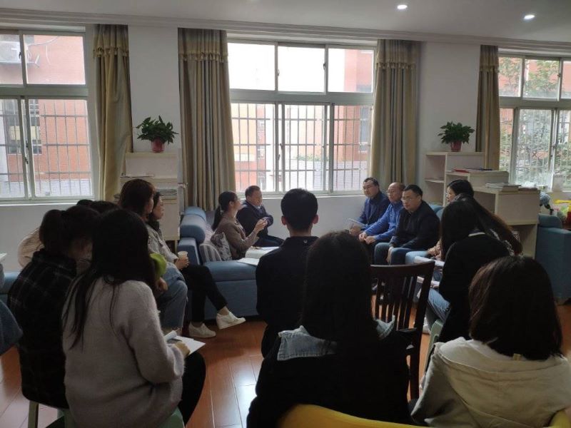 课后,双方领导、老师及实习队全体成员于图书馆二楼专家接待室开展点评交流会。邱海燕首先总结了员工学情、教学设计及课堂效果;随后,廖立、刘灿辉和周敏从教姿教态、语言表达、课堂组织等多方面对其课堂进行点评,同时也对本次公开课给予了高度评价。