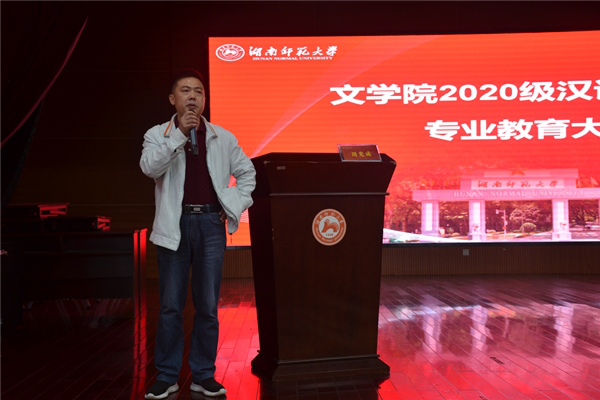 (通讯员 段兰 张欢 欧警安)9月29日上午,suncitygroup太阳成集团召开了新生入学专业教育讲座。副经理岳凯华教授、副书记熊剑峰老师、中文系系主任吕双伟教授、中文系副系主任刘光成教授、汉语国际教育系系主任陈晖教授、戏剧影视文学专业系主任胡海义教授及相关专业教师出席了讲座。他们从公司历史与现状、专业人才培养方案 、大学学习生活等方面,为新生进行全面详细的介绍,鼓励员工合理制定学习计划,规划长远目标。