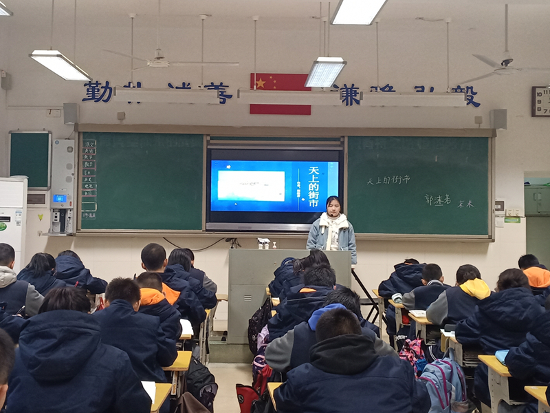 (通讯员 高枫 黄秋香 郑雅婷)12月3日下午,公司2017级中文系赴周南梅溪湖中学实习队进行汇报课暨实习工作总结会议。周南梅溪湖中学董事长叶双秋、公司实习组长刘光成教授、实习带队老师凌宏惠博士、周南梅溪湖中学初一语文组全体教师出席并旁听了由实习队队员黎娅完成的汇报课——《天上的街市》,并在稍后的会议中做出指导点评。